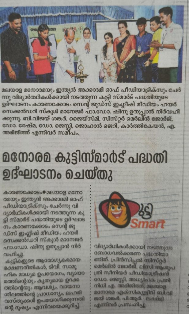 St. Jude’s EMHSS was proud to host the “KuttySmart” program on October 10, 2025, in collaboration with Malayala Manorama and the Indian Academy of Pediatrics. The program aimed to create awareness among students on child development,and their physical and mental health including: